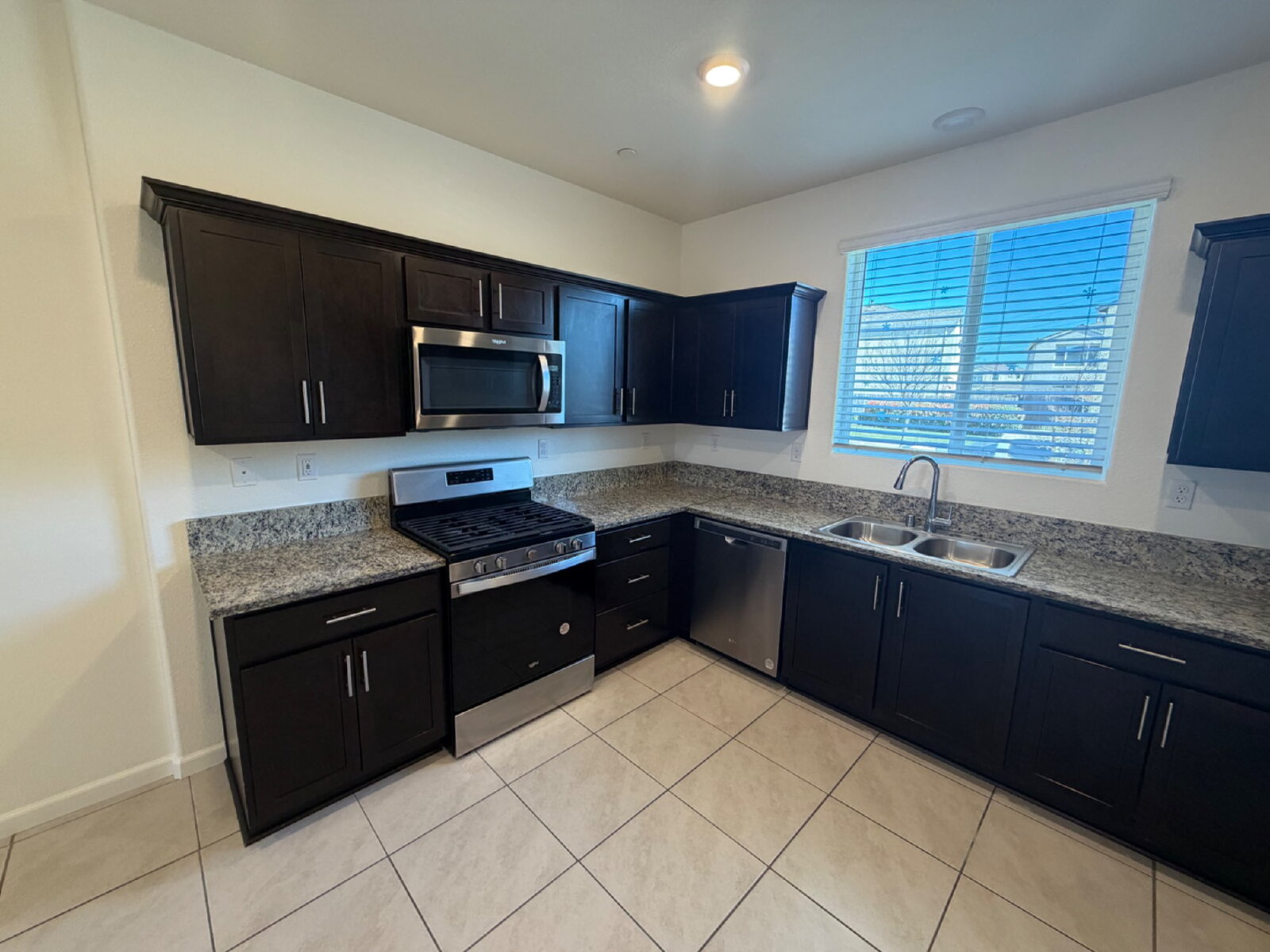 Appliances to include: gas oven/range, above range microwave, dishwasher, garbage disposal, and refrigerator. Washer and dryer hookups conveniently located upstairs.