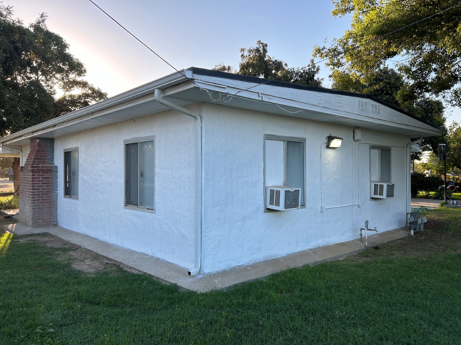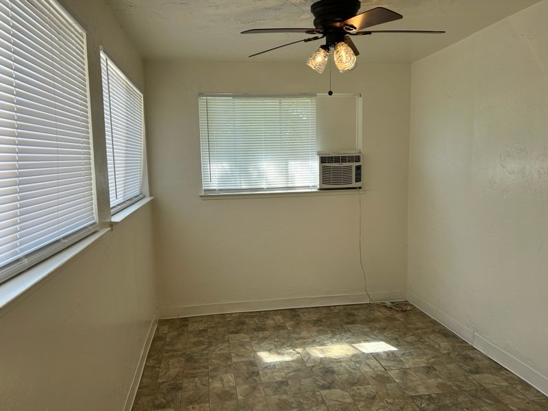 Home has been freshly painted inside and out and offers new window treatments, individual window AC units in each room along with ceiling fans. Washer/dryer hookups.